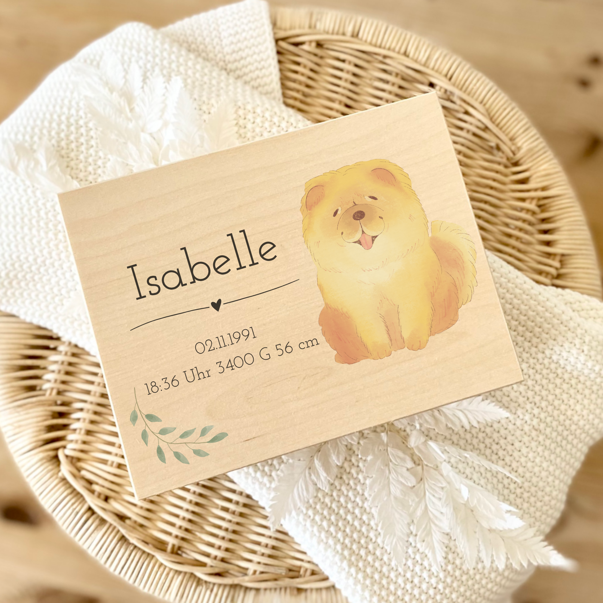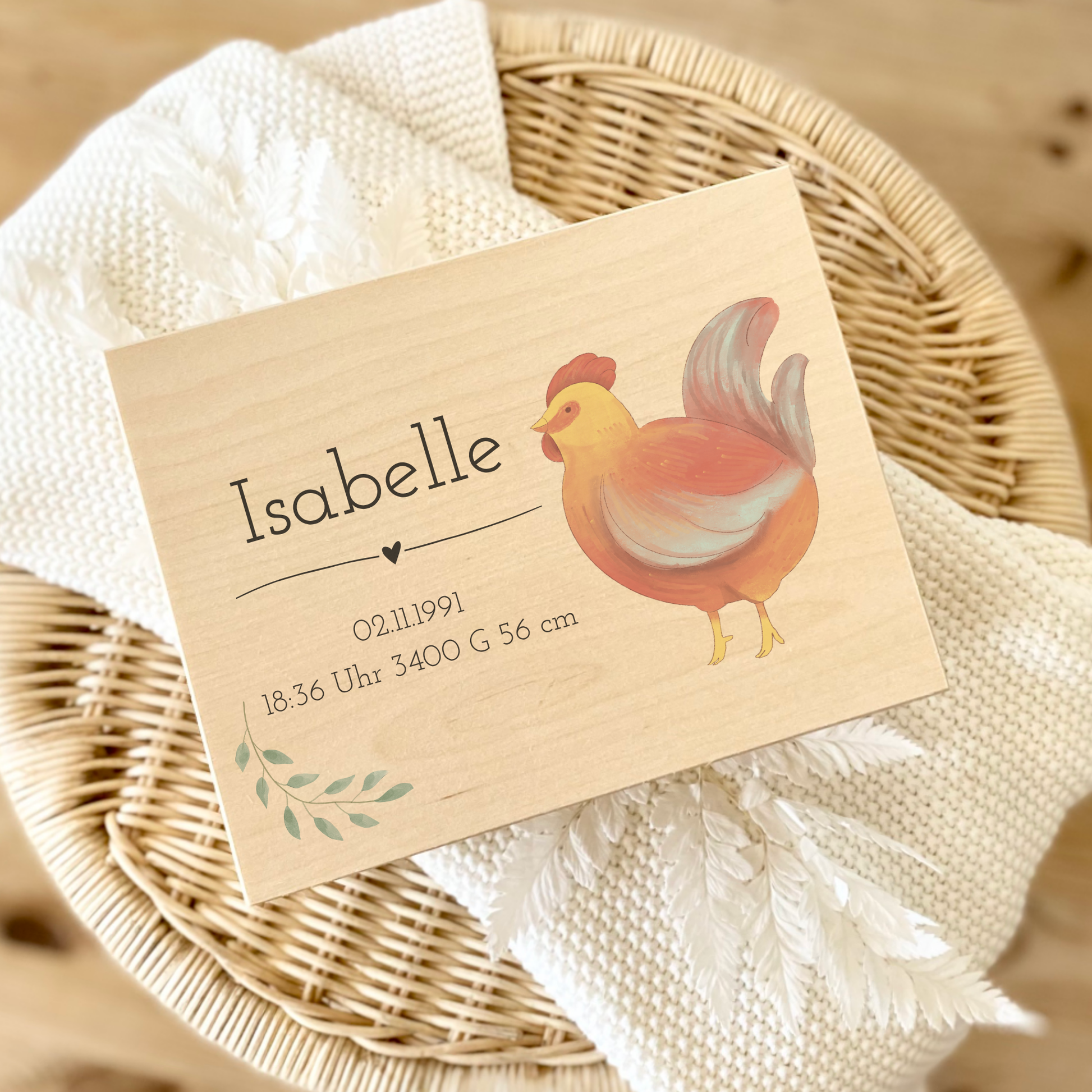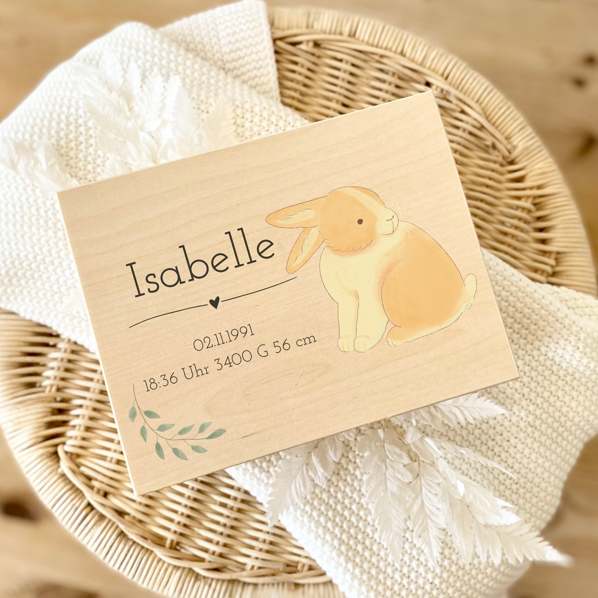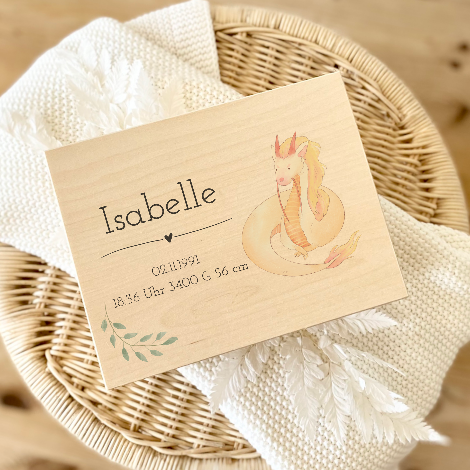 Diese hochwertig verarbeitete Holzkiste ist ein liebevolles Geschenk zur Geburt, Taufe oder zum Kindergeburtstag. Der Deckel wird mit dem Namen des Kindes, den Geburtsdaten und einem liebevoll illustrierten Tier gestaltet: dezent, stilvoll und ganz persönlich.